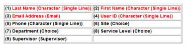 Required fields: Last Name, First Name, Email Address, and User ID. (The field "User ID" is the Primary Key and must be included as one of the fields to be imported.)